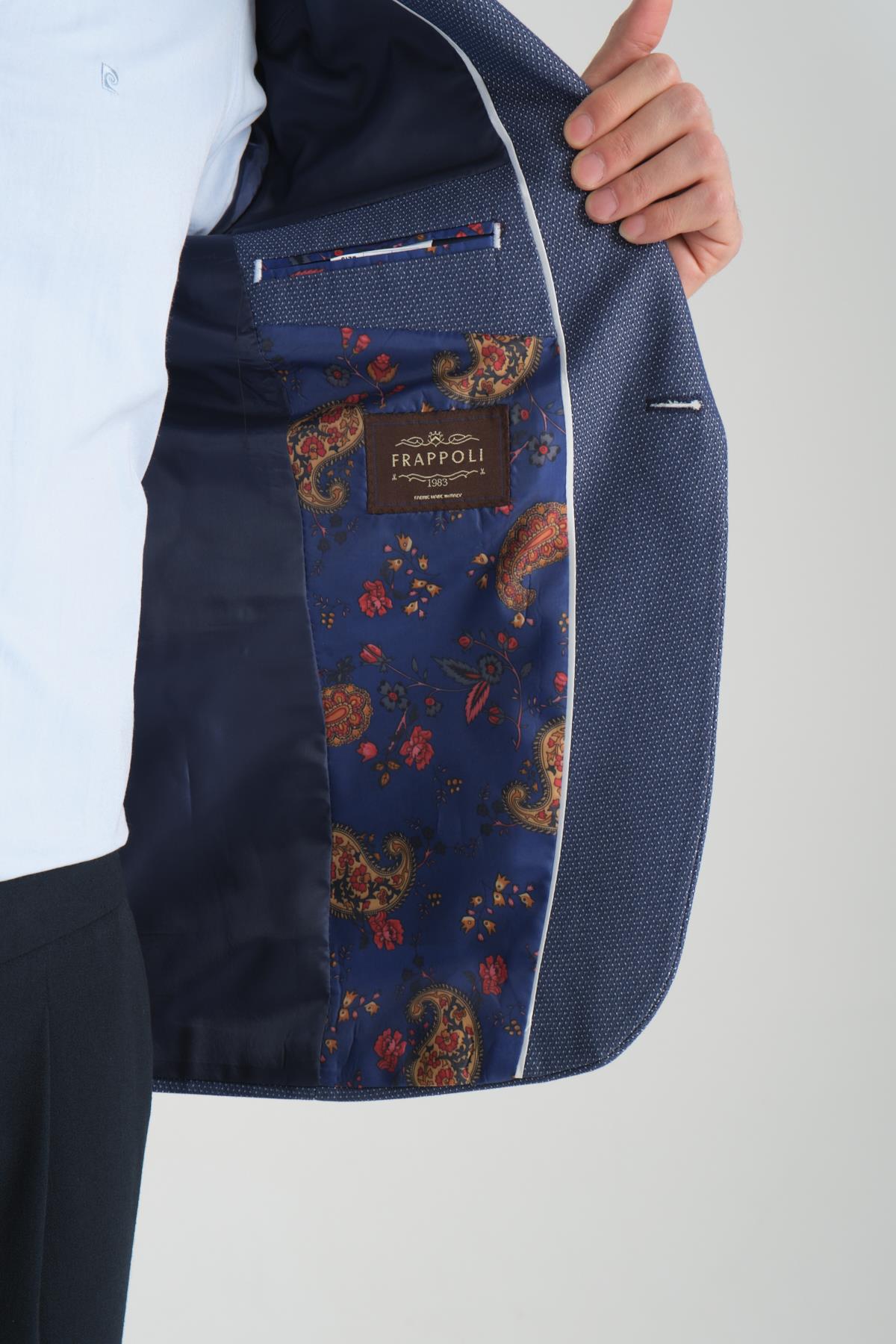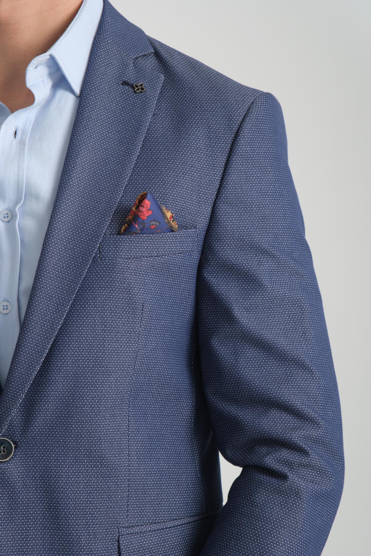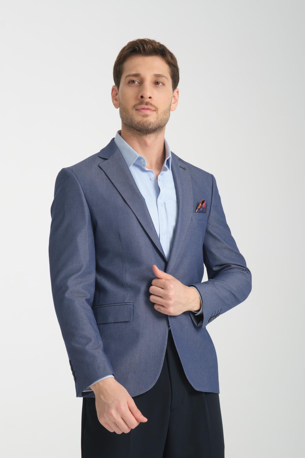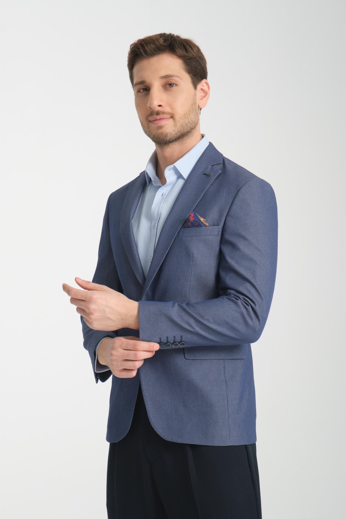 Agabio Erkek Lacivert Kendinden Desenli Slim Fit Mono Yaka Spor Blazer Ceket
