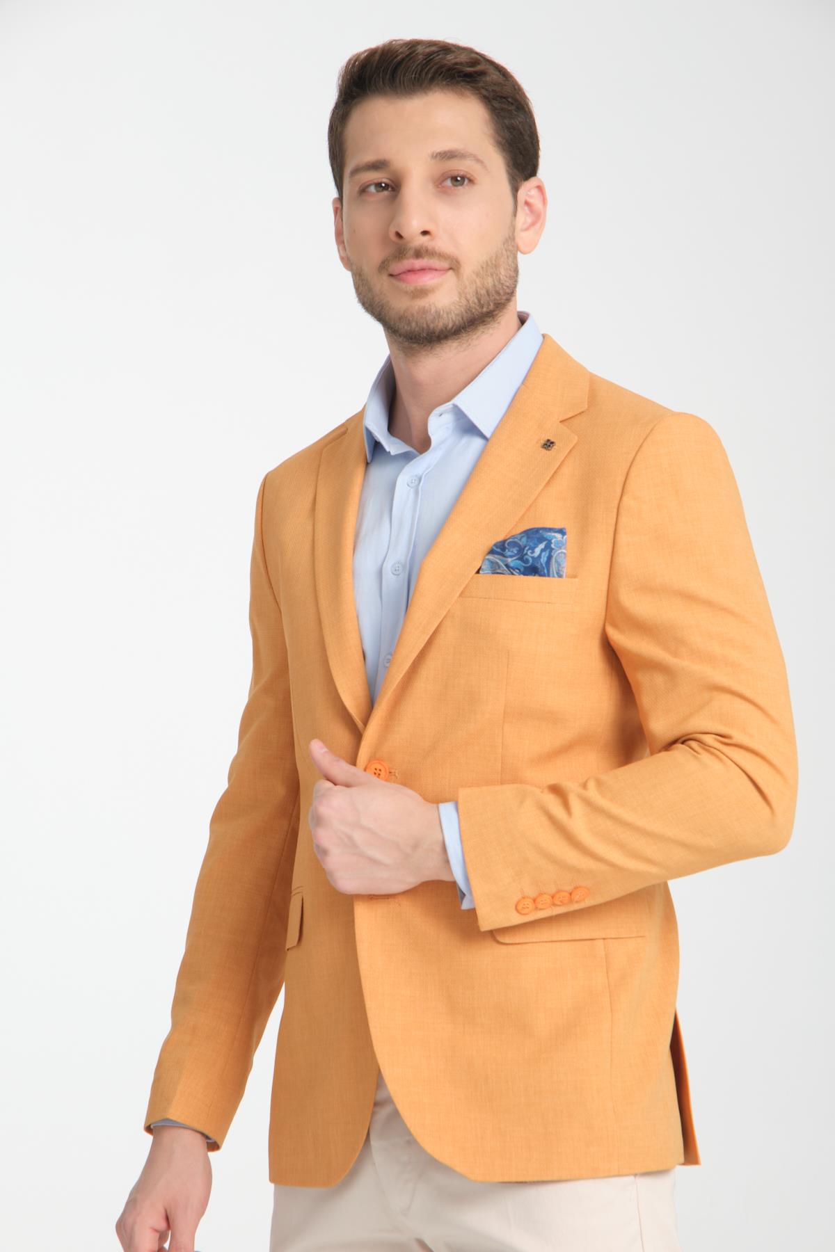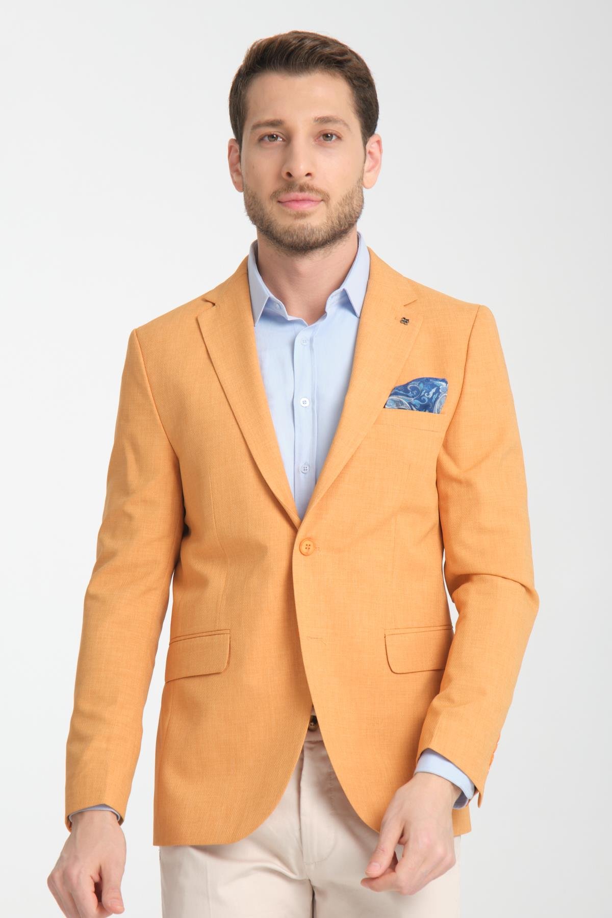 Arunte Erkek Kiremit Keten Görünümlü Ince Dört Mevsim Giyilebilir Slim Fit Blazer Ceket