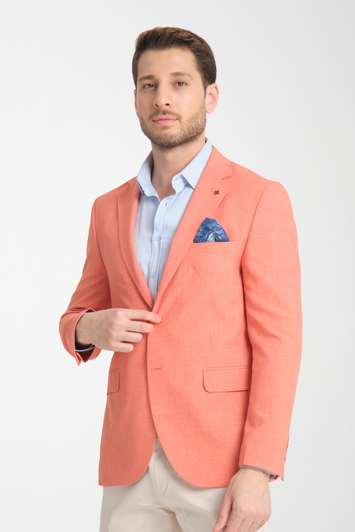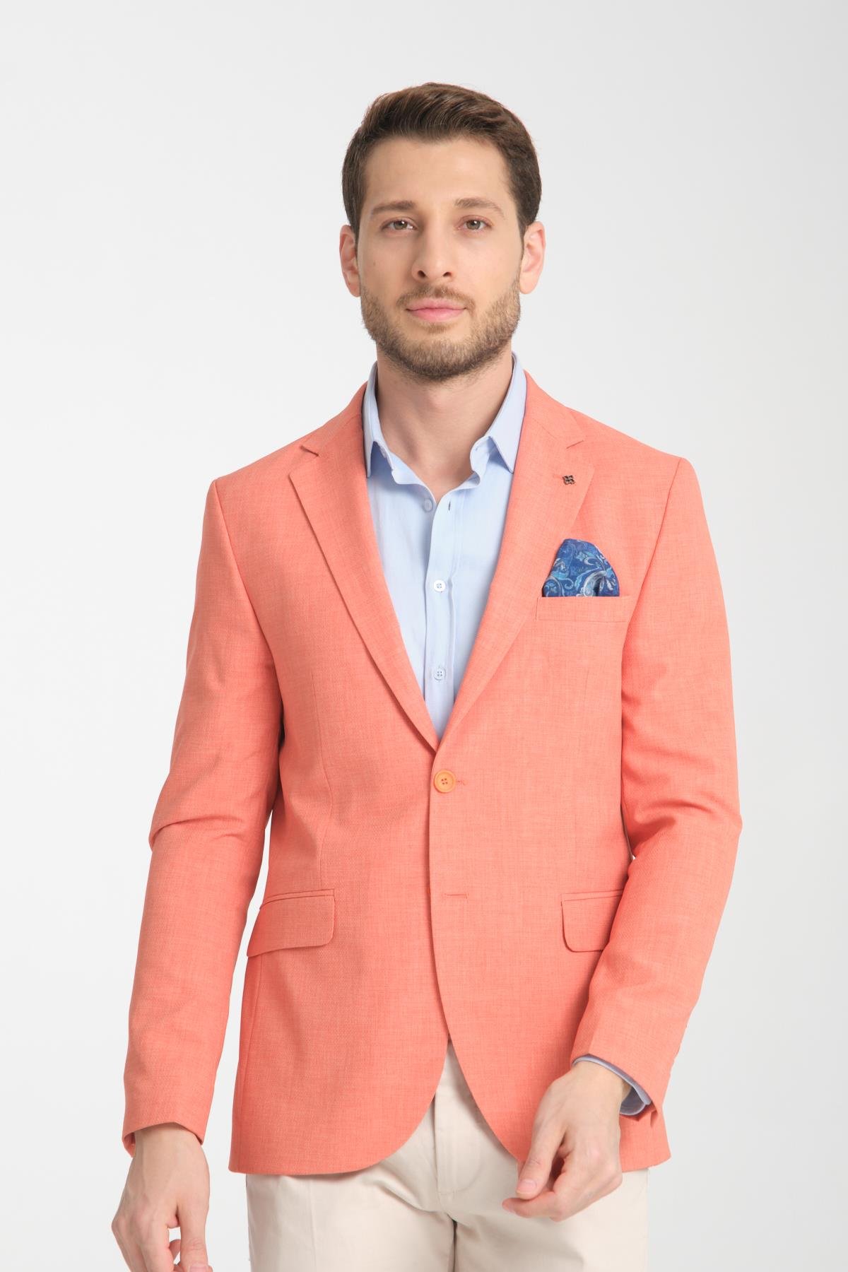 Arunte Erkek Orange Keten Görünümlü Ince Dört Mevsim Giyilebilir Slim Fit Blazer Ceket