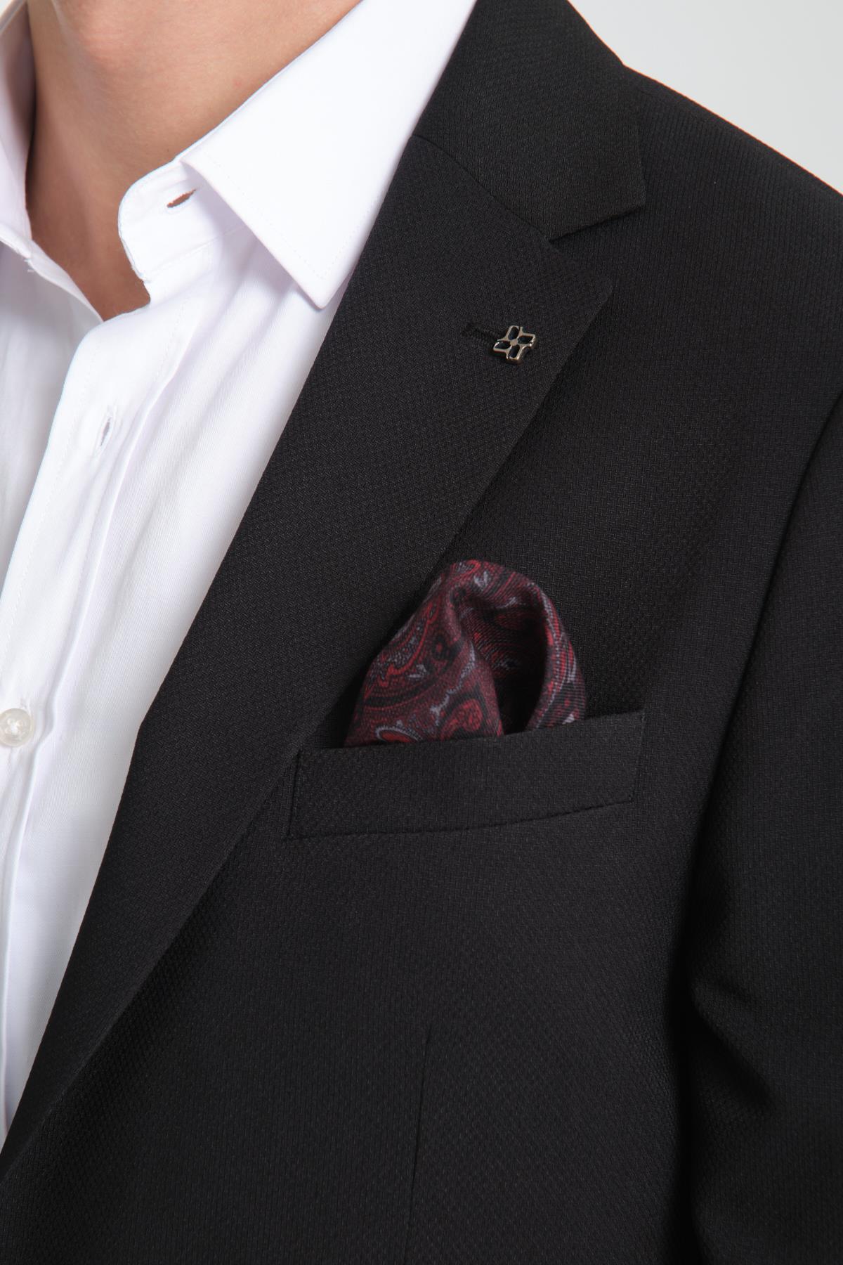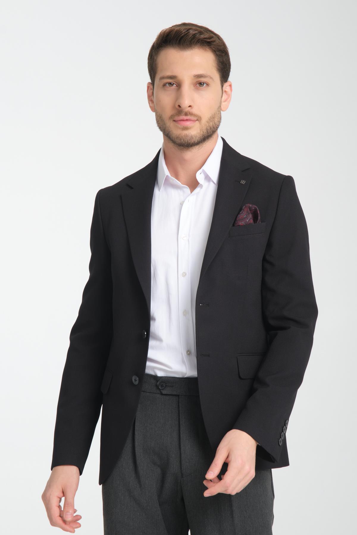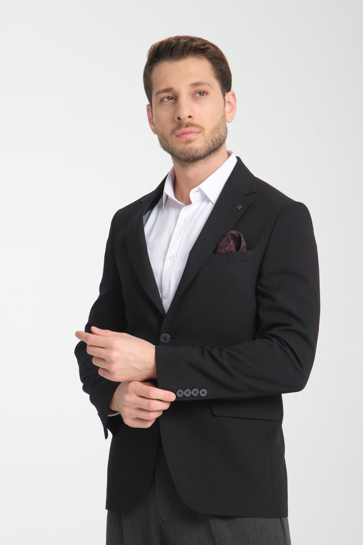 Arunte Erkek Siyah Keten Görünümlü Ince Dört Mevsim Giyilebilir Slim Fit Blazer Ceket