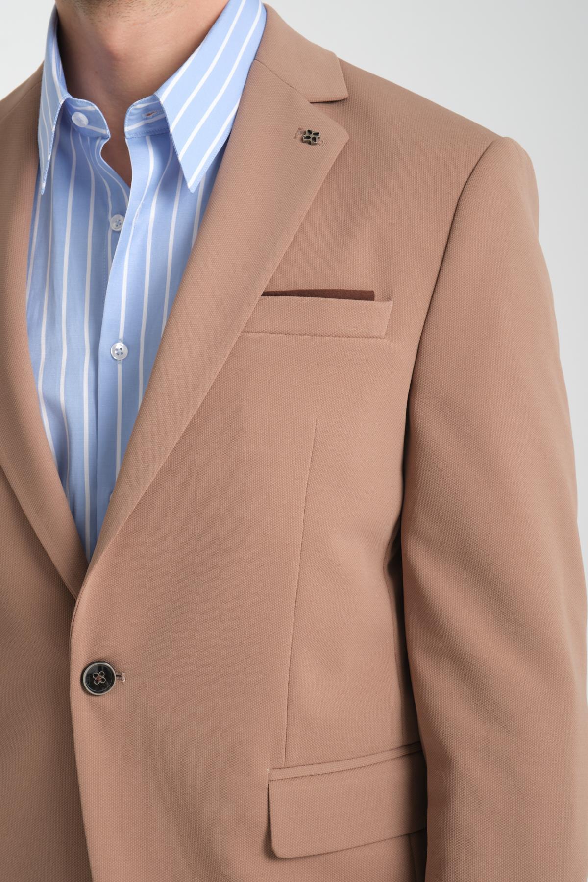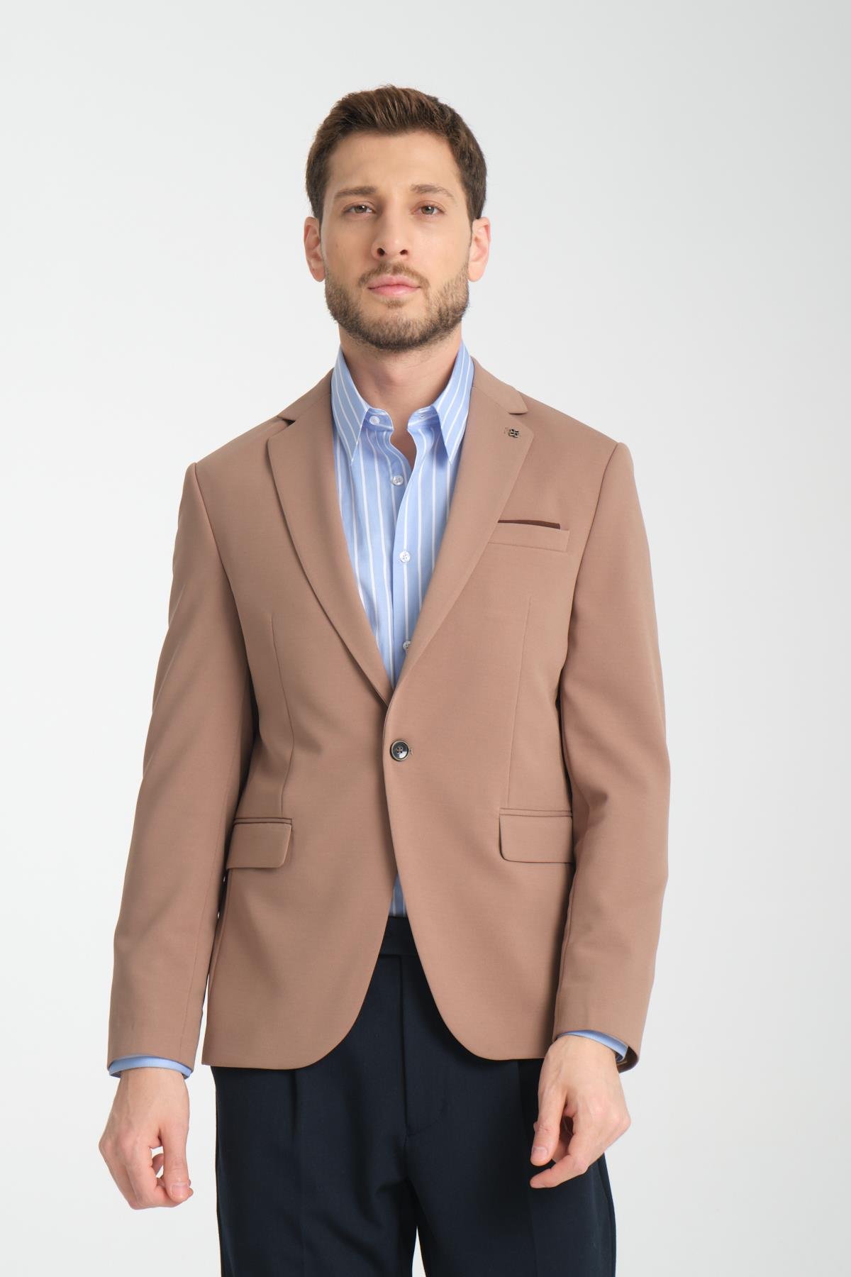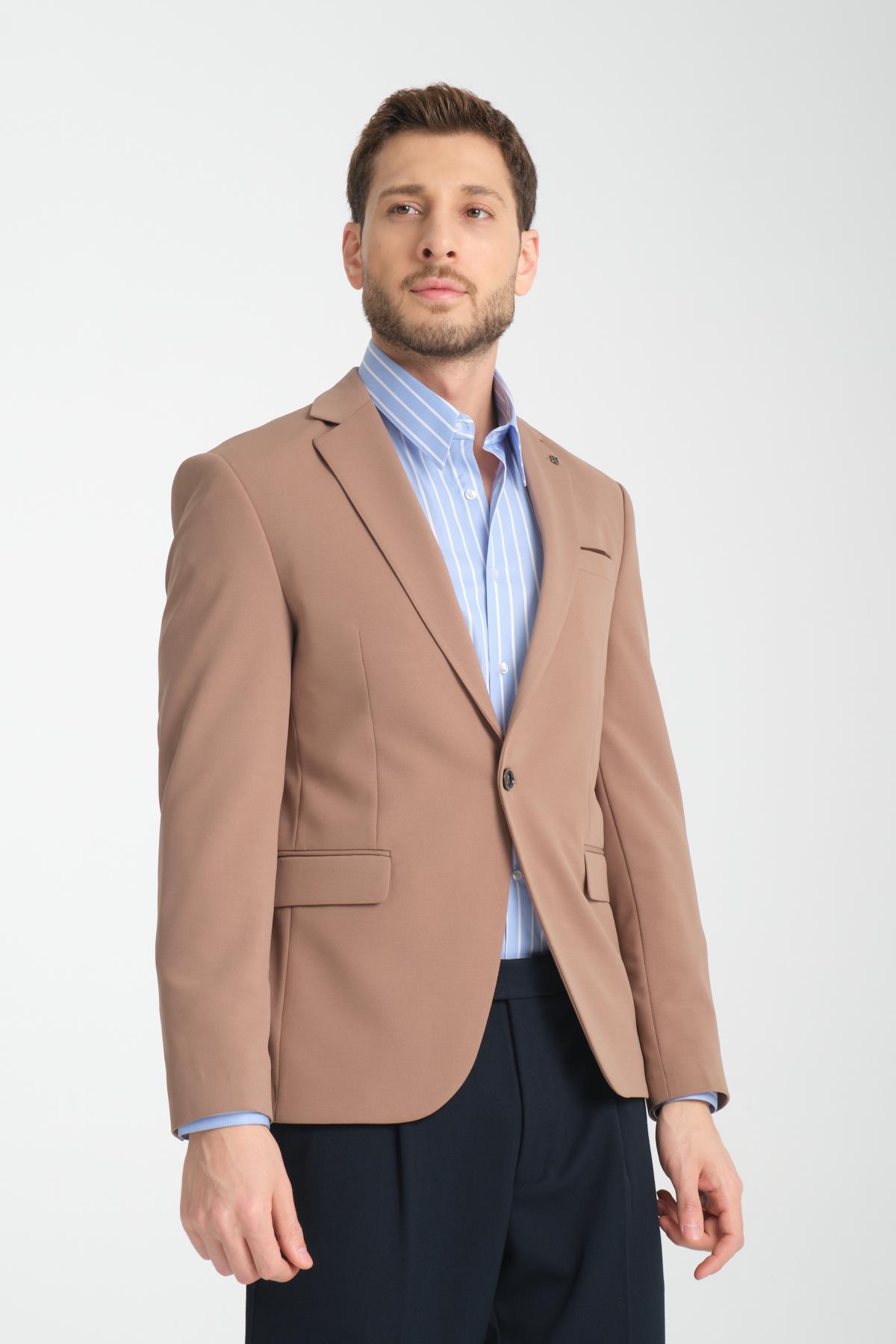 Baselna Erkek Vizon Esneyen Likralı Kumaşlı Tam Astarlı Slim Fit Mono Yaka Dar Kesim Blazer Ceket