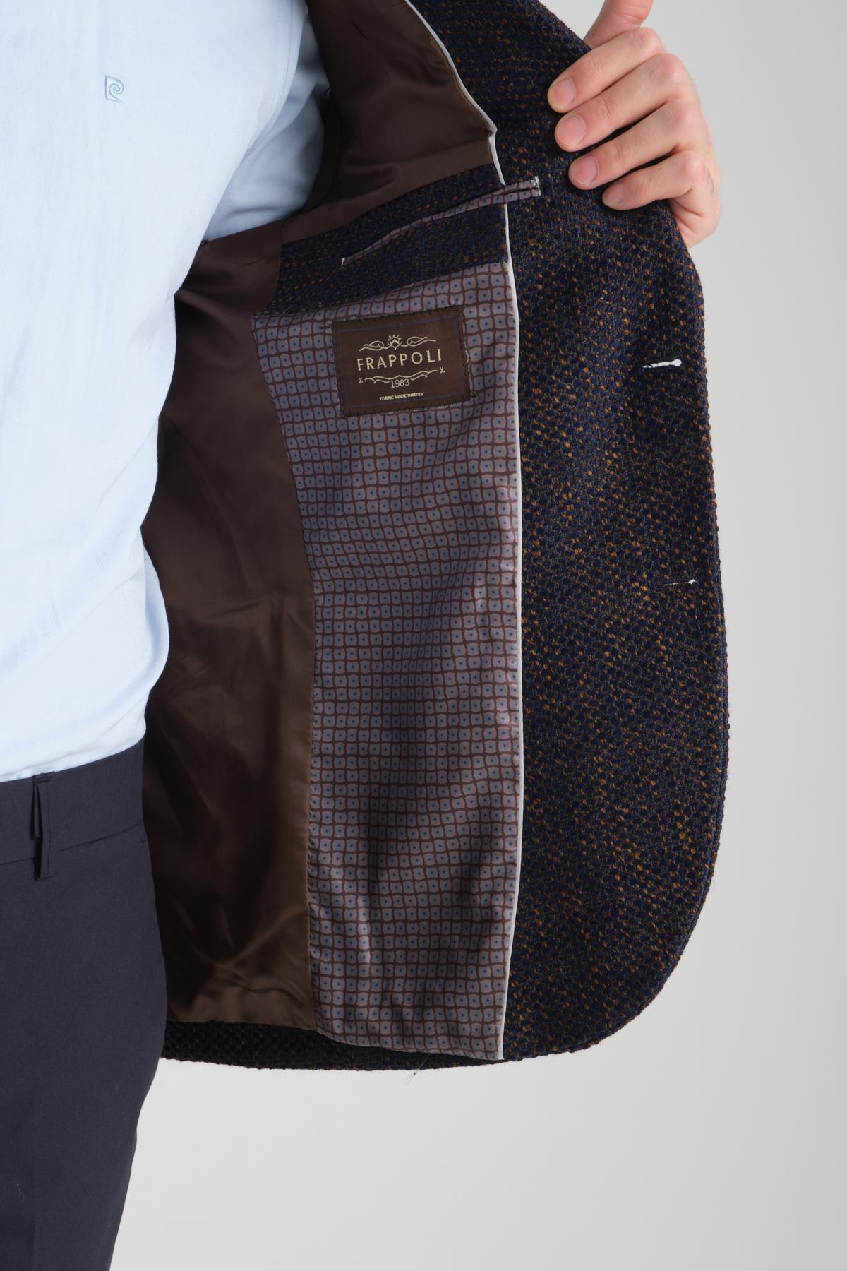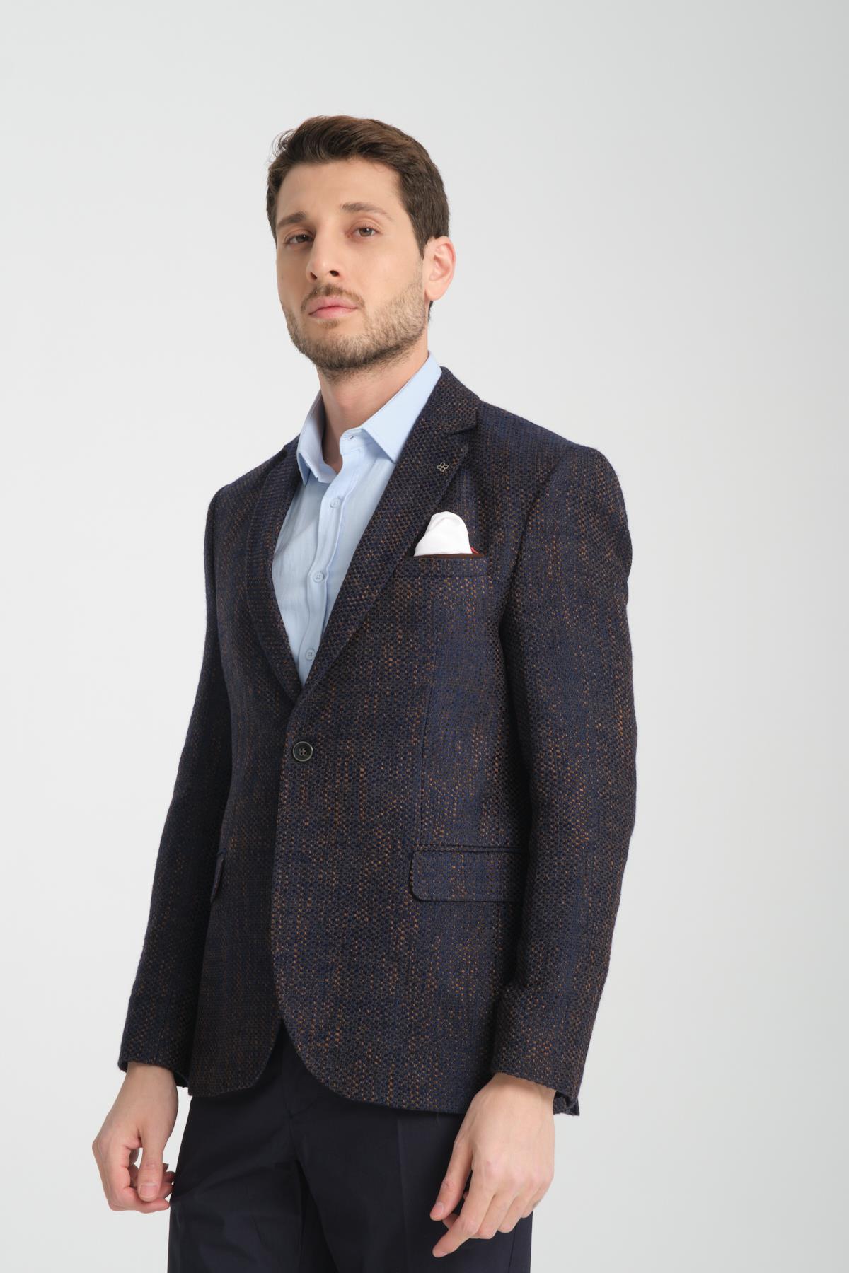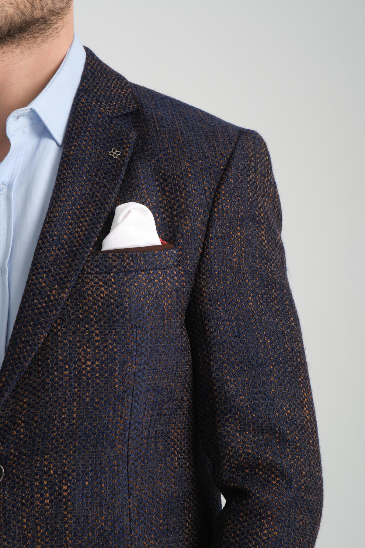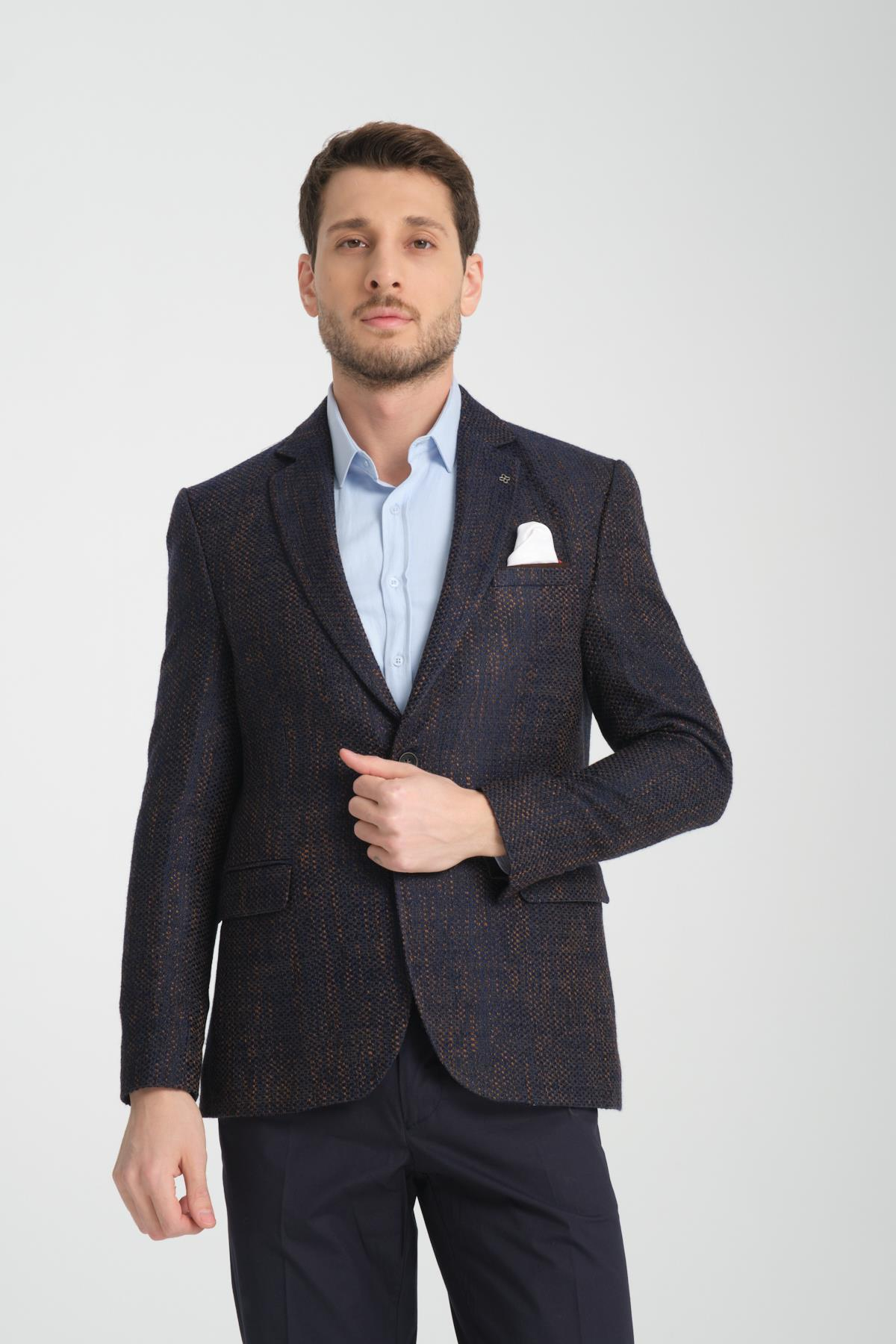 Boris Erkek Lacivert-Kahve Desenli Mono Yaka Kalin Slim Fit Dar Kesim Blazer Ceket