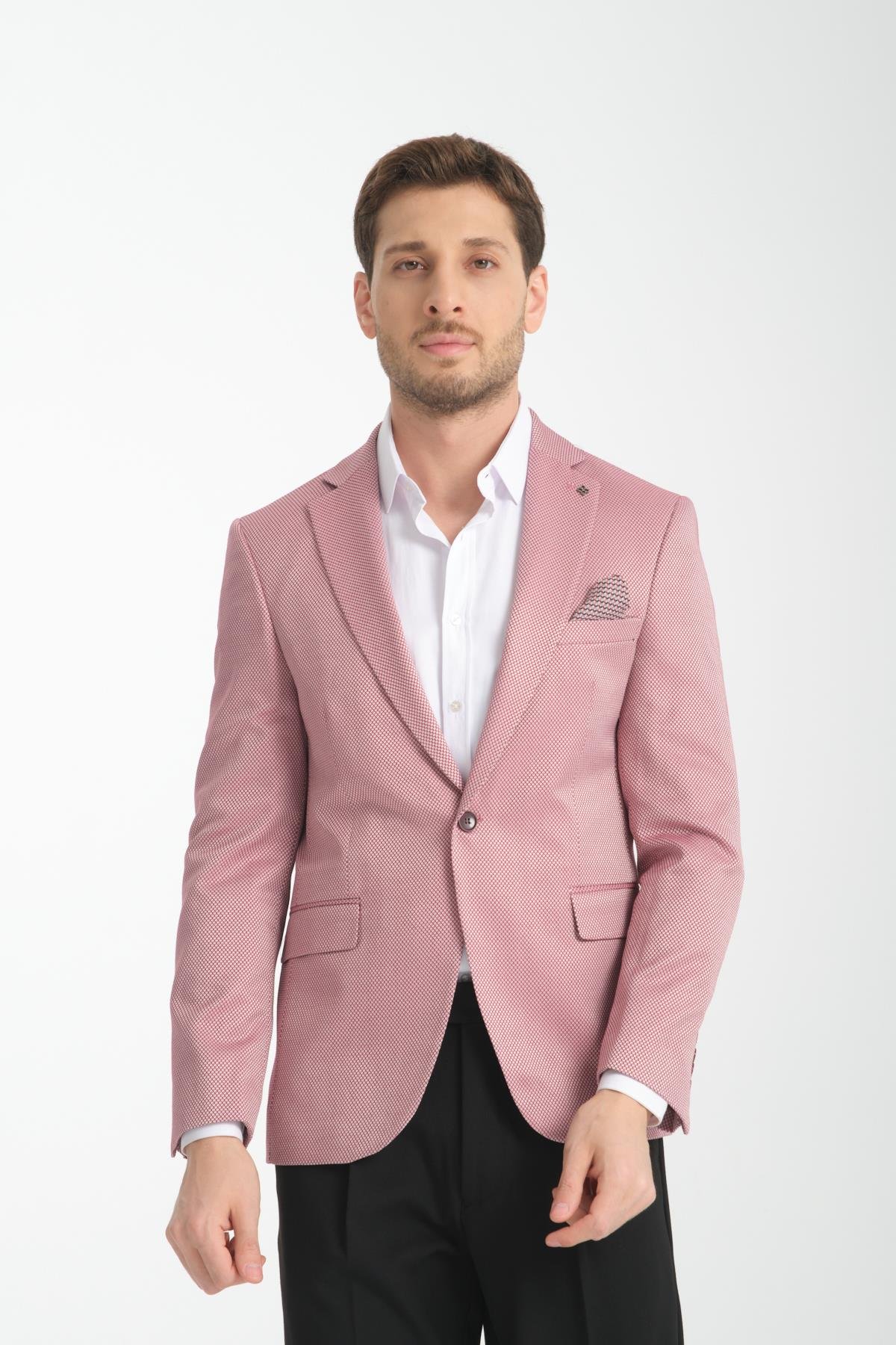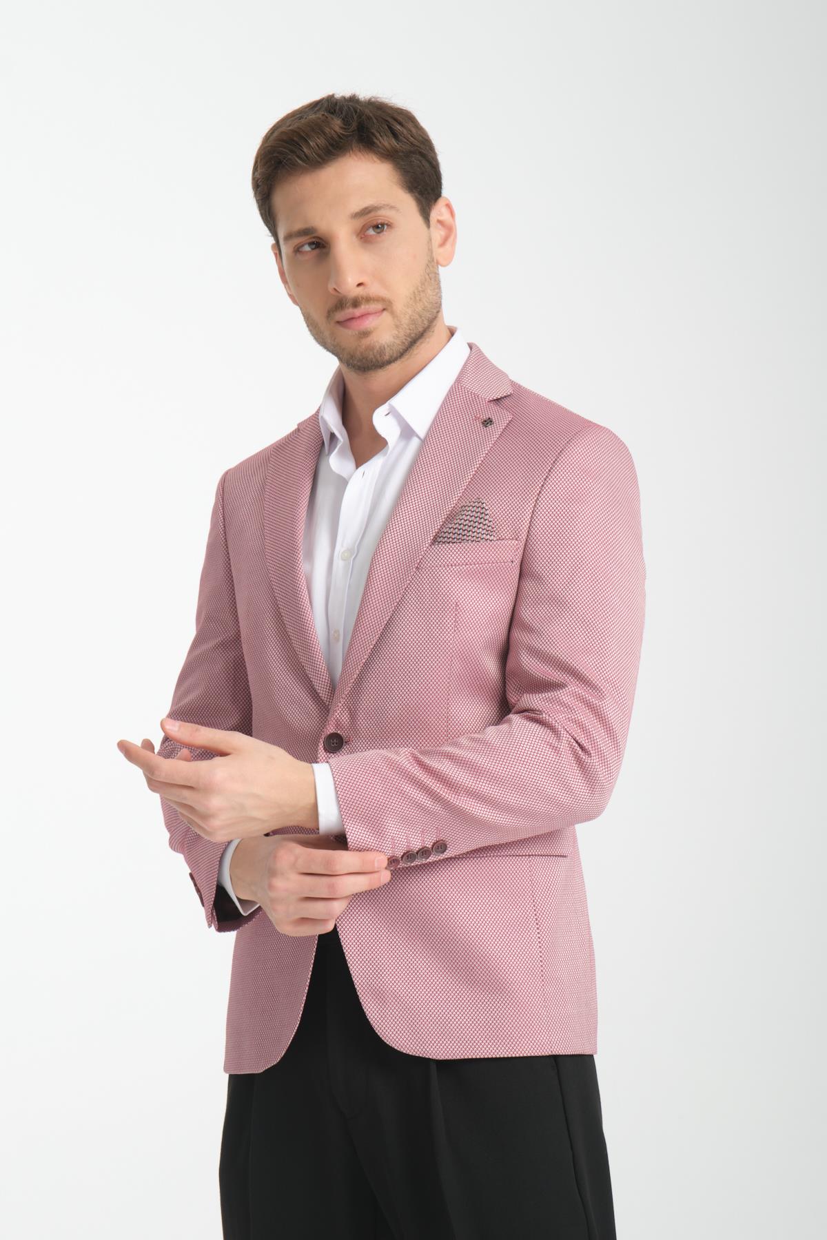 Elita Erkek Bordo Mikro Desenli Slim Fit Mono Yaka Spor Blazer Ceket