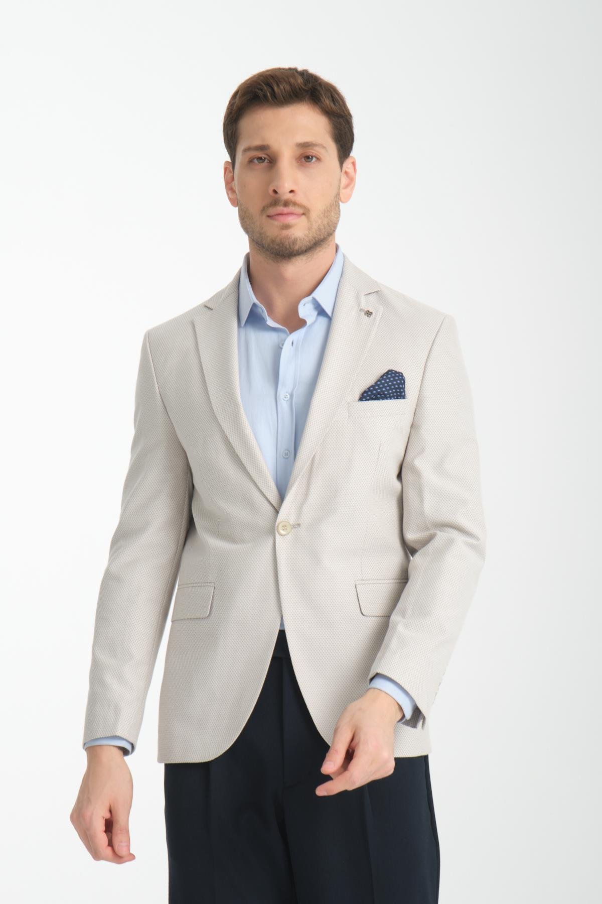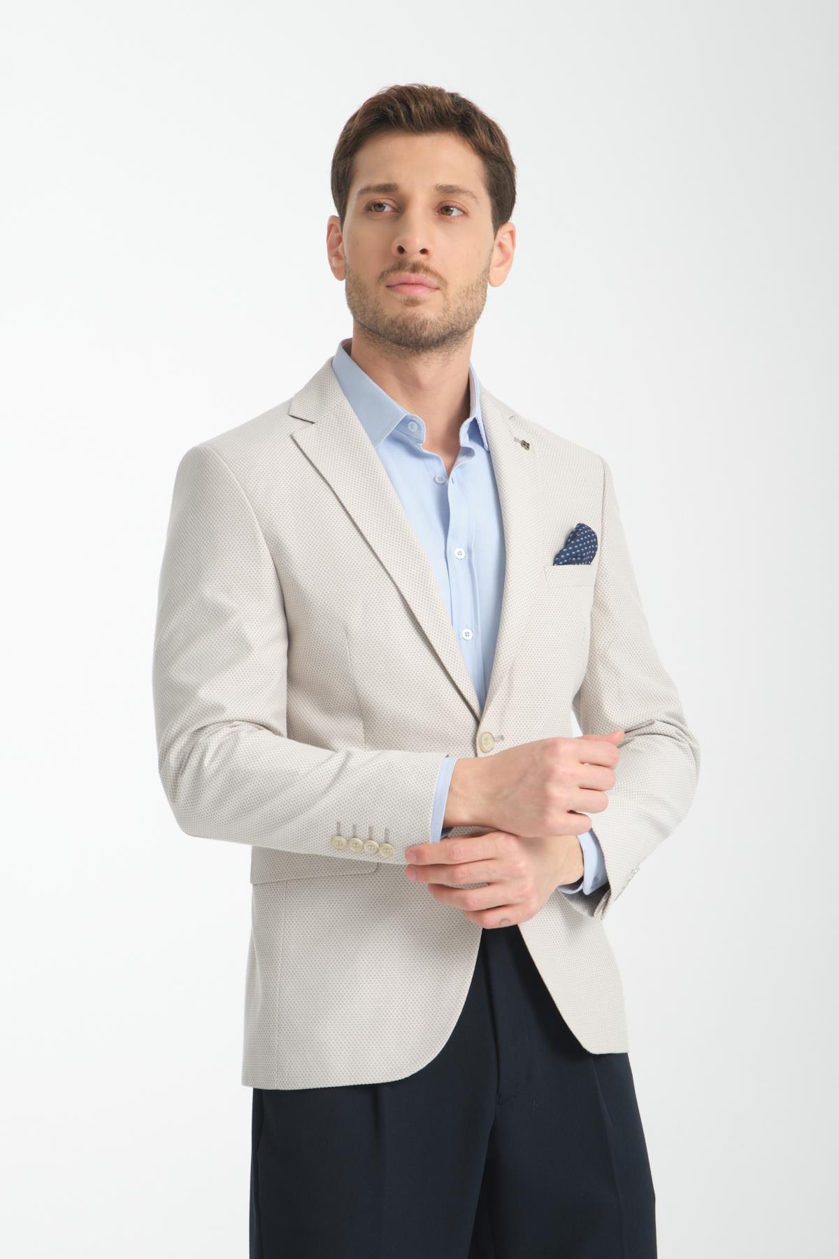 Galdino Erkek Gri Kendinden Desenli Slim Fit Mono Yaka Spor Blazer Ceket