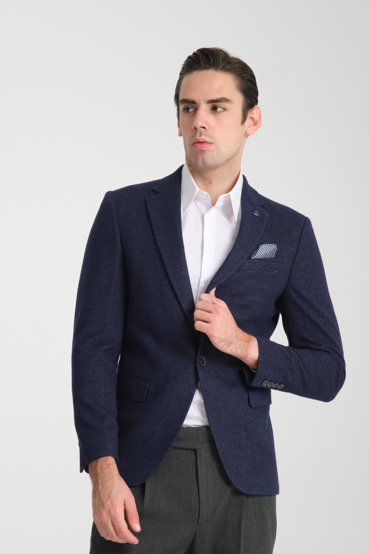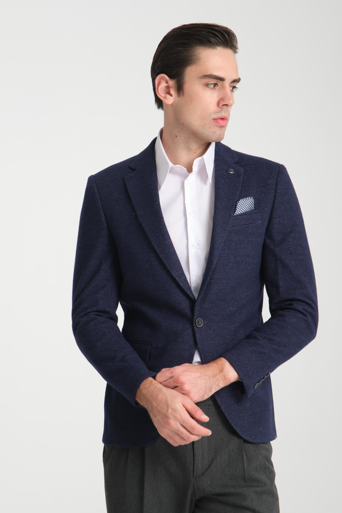 Kasetti Erkek Parlament Esnek Kumaşlı Slim Fit Mono Yaka Spor Blazer Ceket
