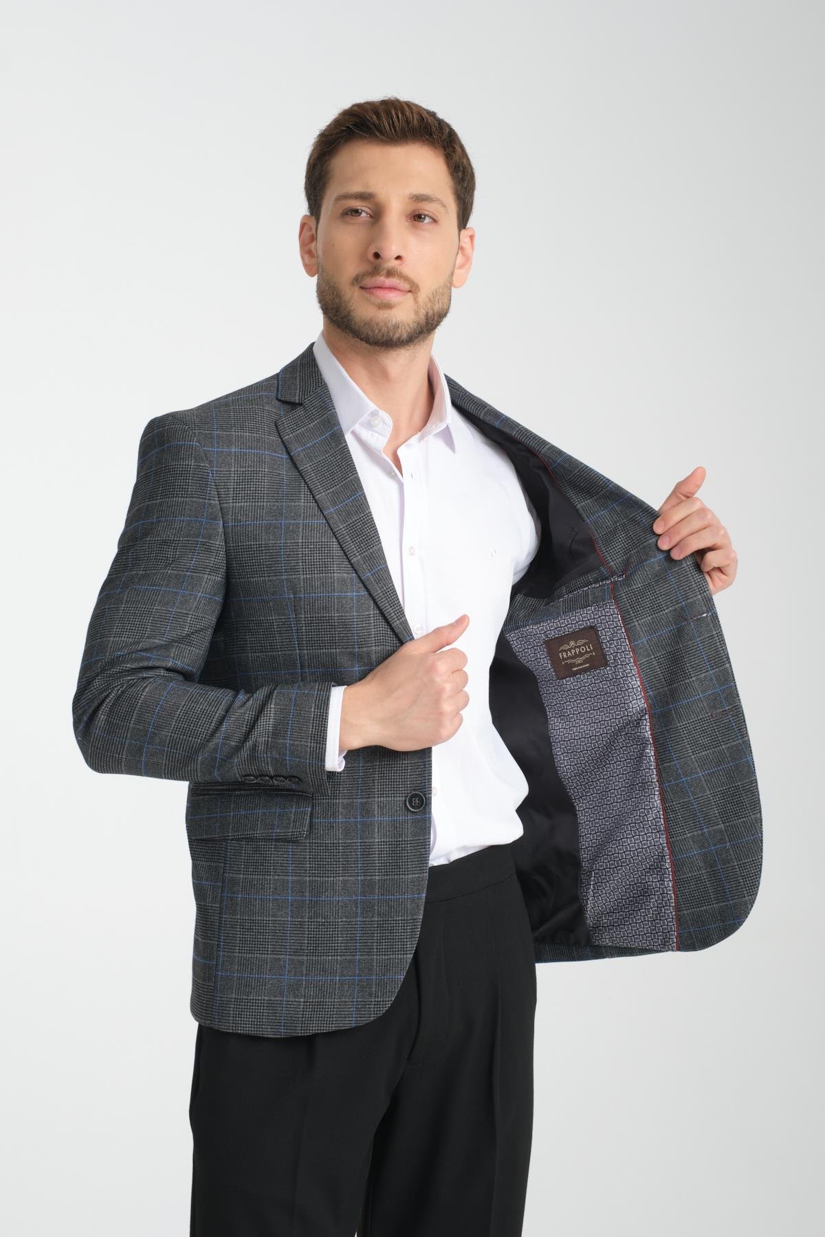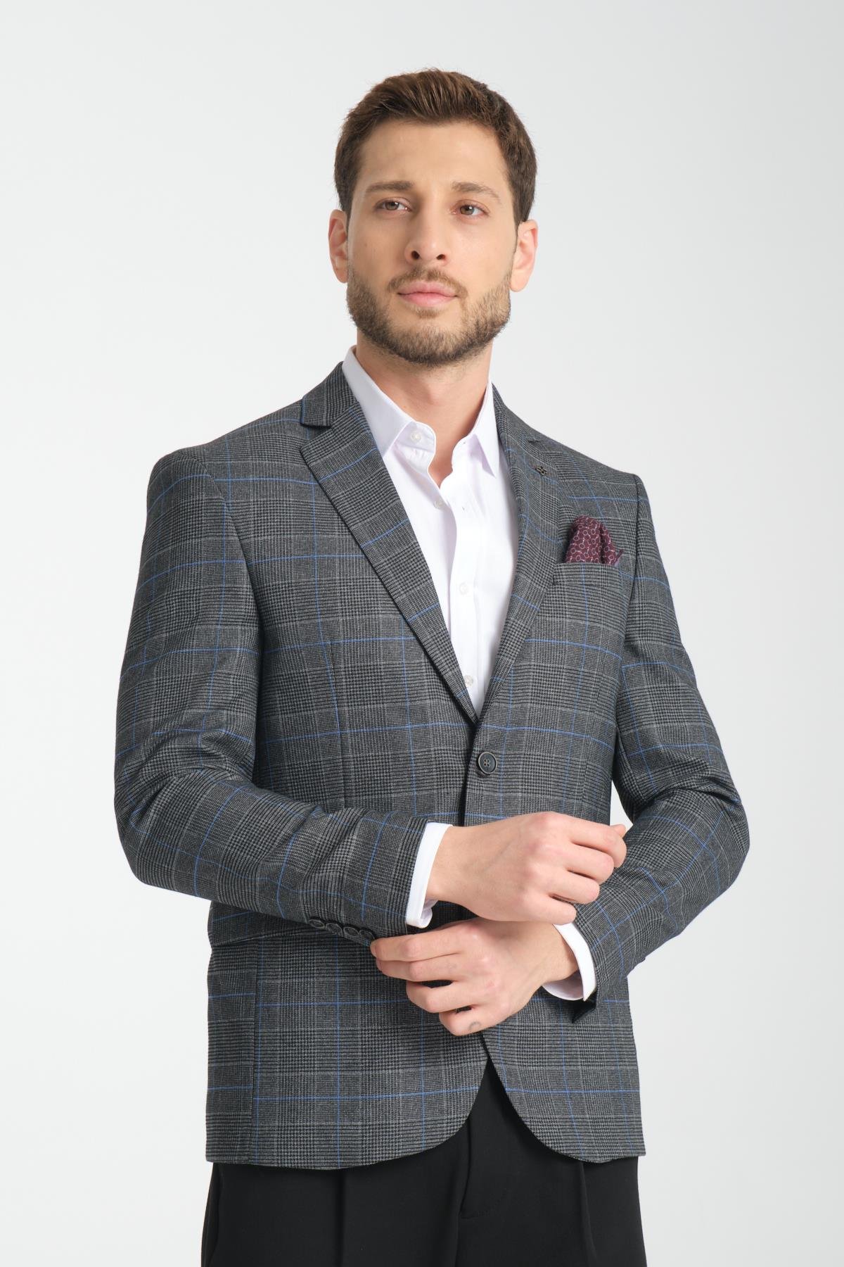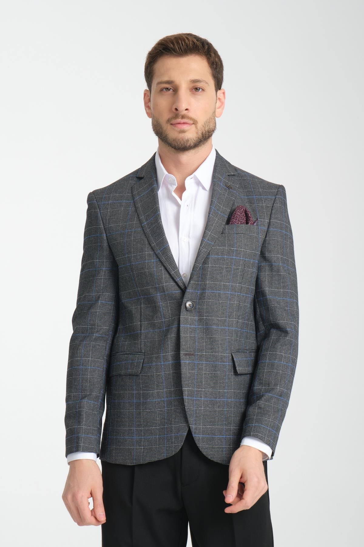 Larkin Erkek Siyah Ekose Slim Fit Mono Yaka Spor Blazer Ceket