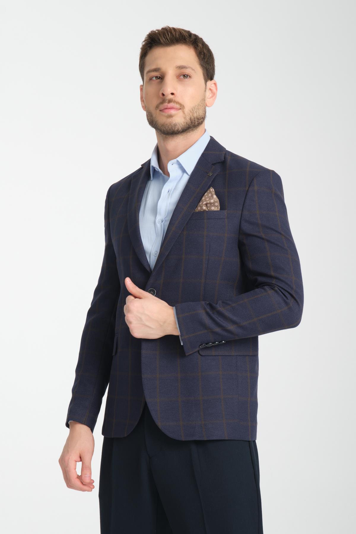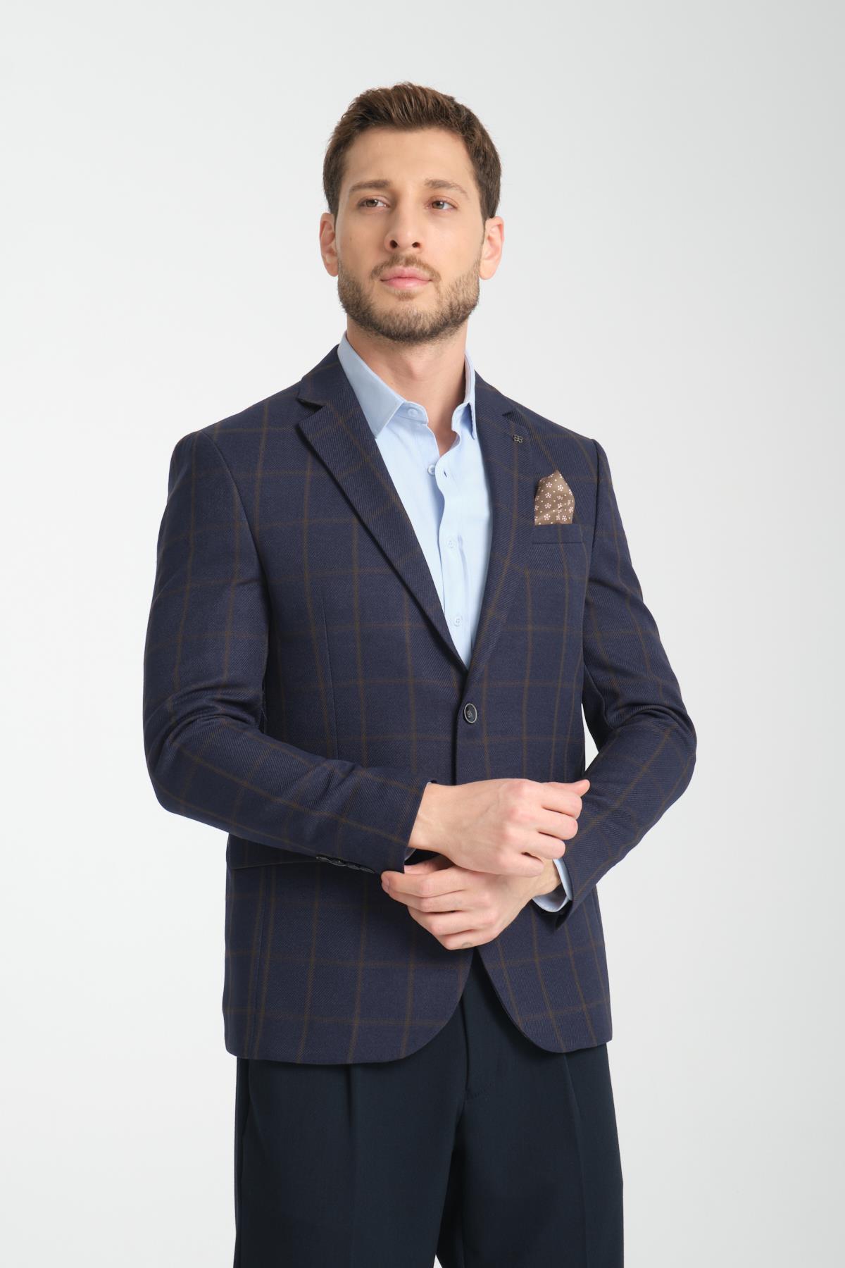 Martin Ekose Erkek Koyu Lacivert-Kahve Polyester Kumaşlı Slim Fit Mono Yaka Spor Blazer Ceket Martin Ekose Erkek Lacivert-Yeşil Polyester Kumaşlı Slim Fit Mono Yaka Spor Blazer Ceket