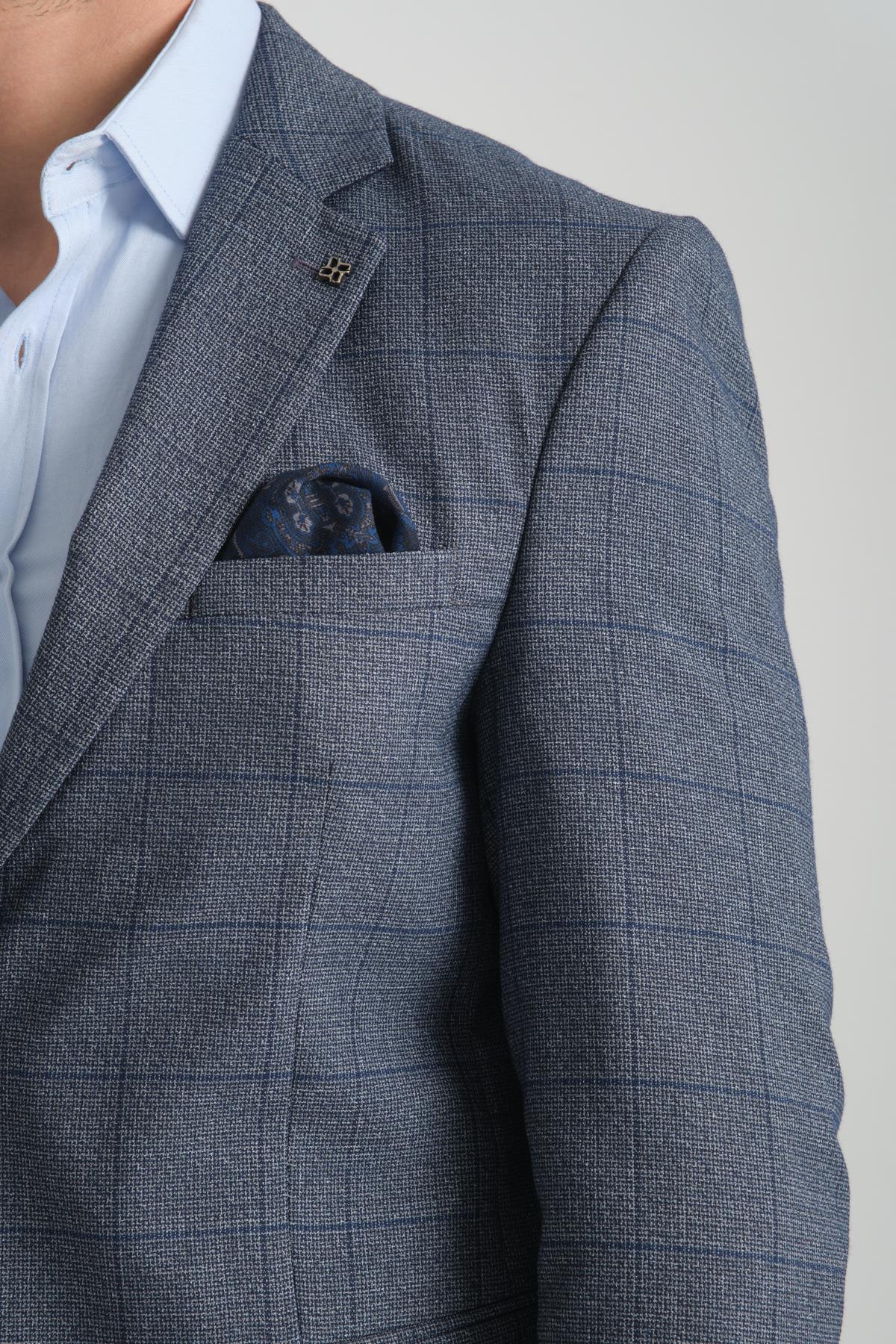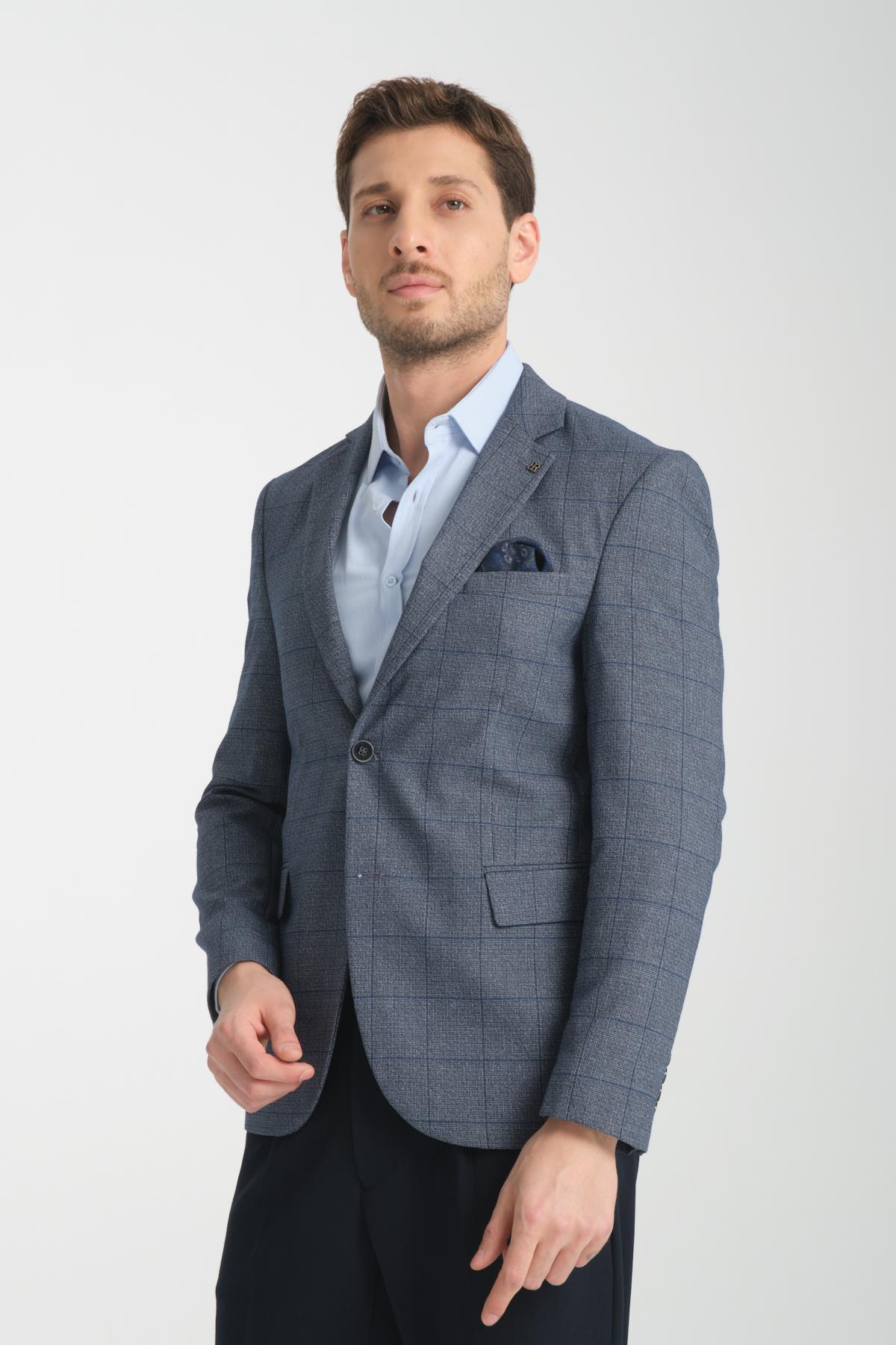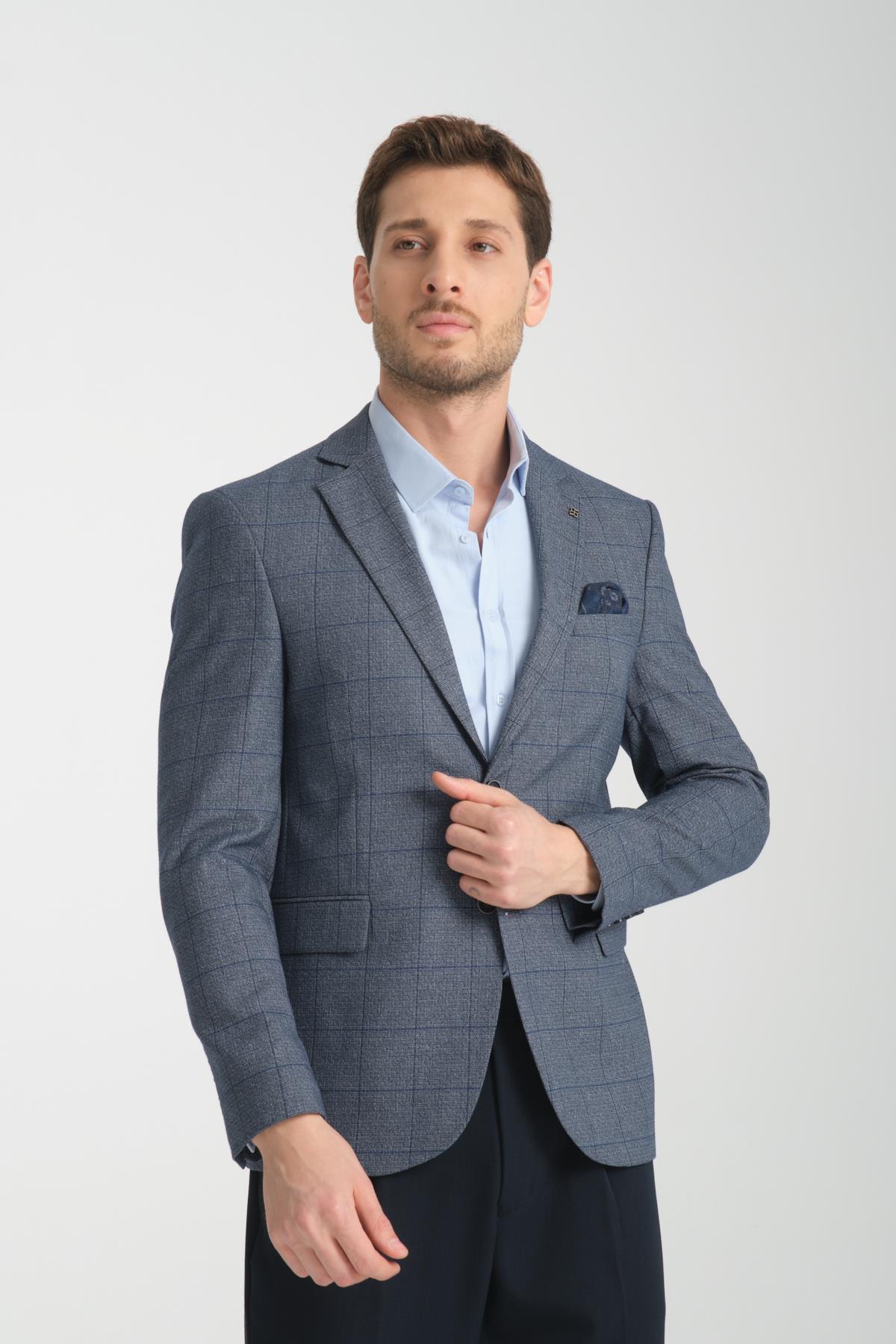 Mendes Erkek Koyu Lacivert Ekose Slim Fit Mono Yaka Spor Blazer Ceket