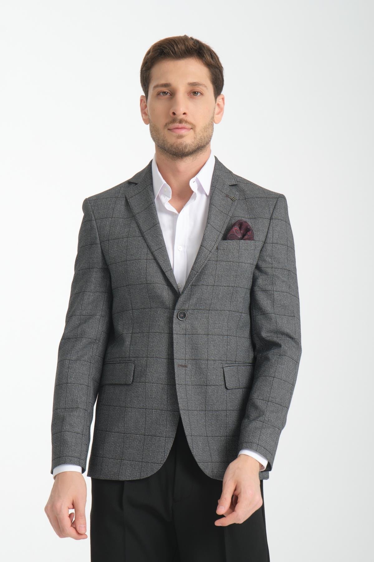 Mendes Erkek Siyah Ekose Slim Fit Mono Yaka Spor Blazer Ceket