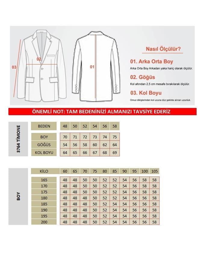 ÖNEMLİ NOT: TAM BEDENİNİZİ ALMANIZI TAVSİYE EDERİZ! MANKEN BOYU:1.87 KİLO:83 ÜZERİNDEKİ CEKET 50 BEDENDİR!
