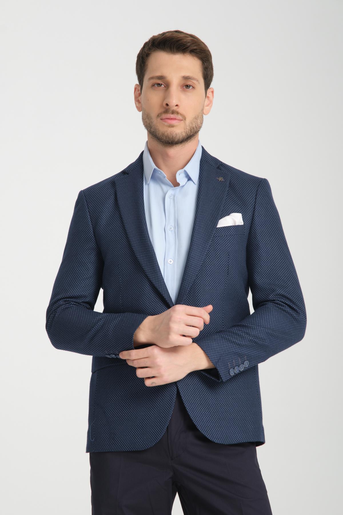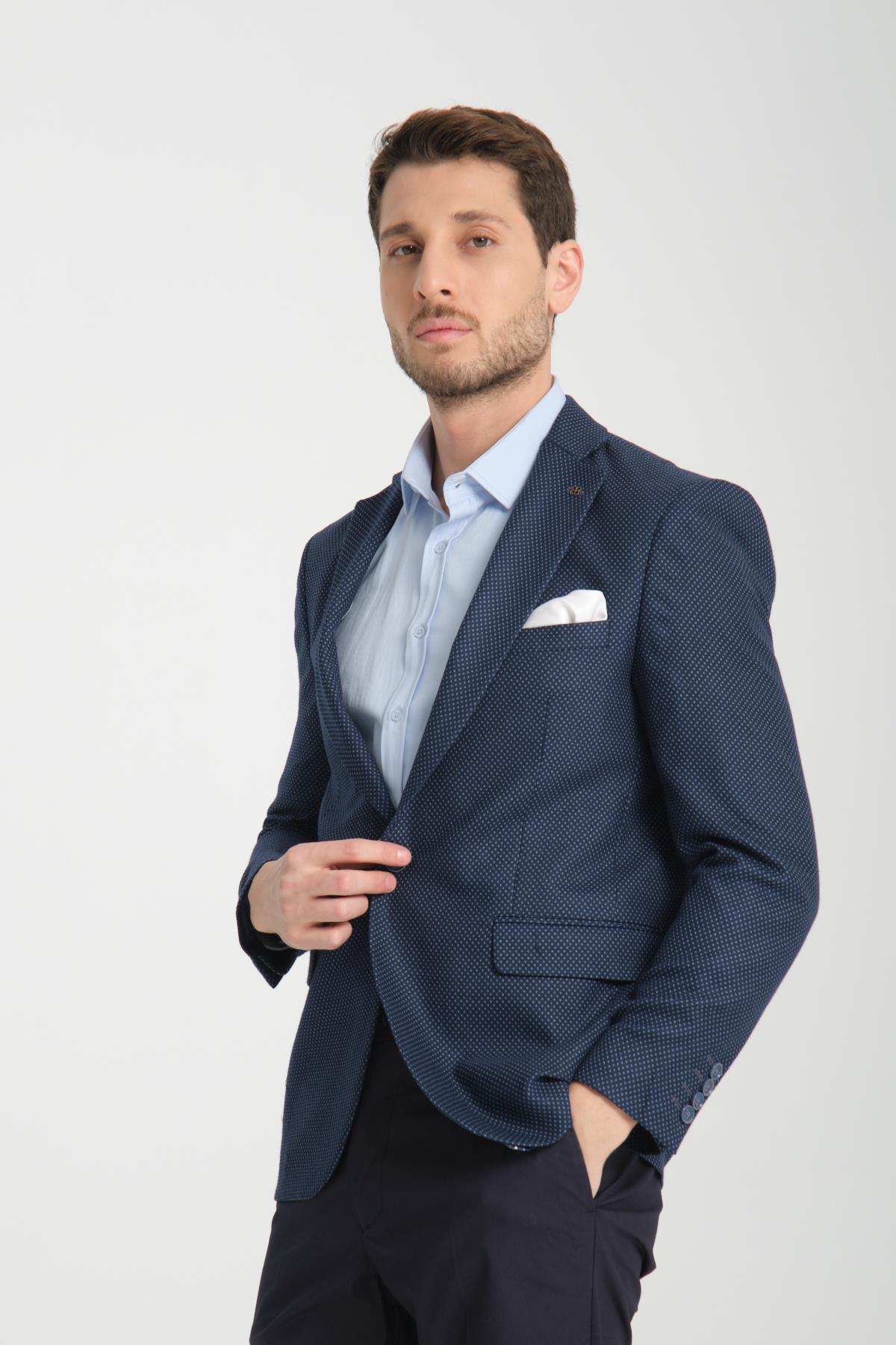 Timone Erkek Açık Lacivert Slim Fit Dar Kesim Desenli Mevsimlik Blazer Ceket