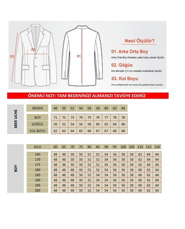 ÖNEMLİ NOT: TAM BEDENİNİZİ ALMANIZI TAVSİYE EDERİZ! MANKEN BOYU:1.87 KİLO:83 ÜZERİNDEKİ CEKET 50 BEDENDİR!