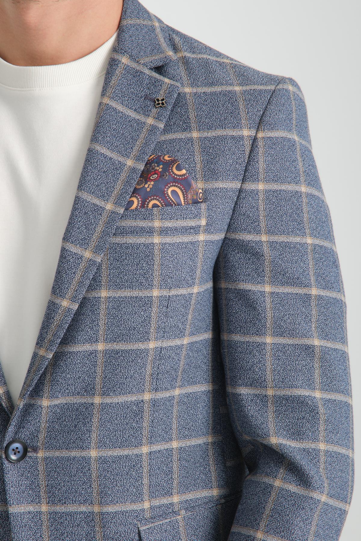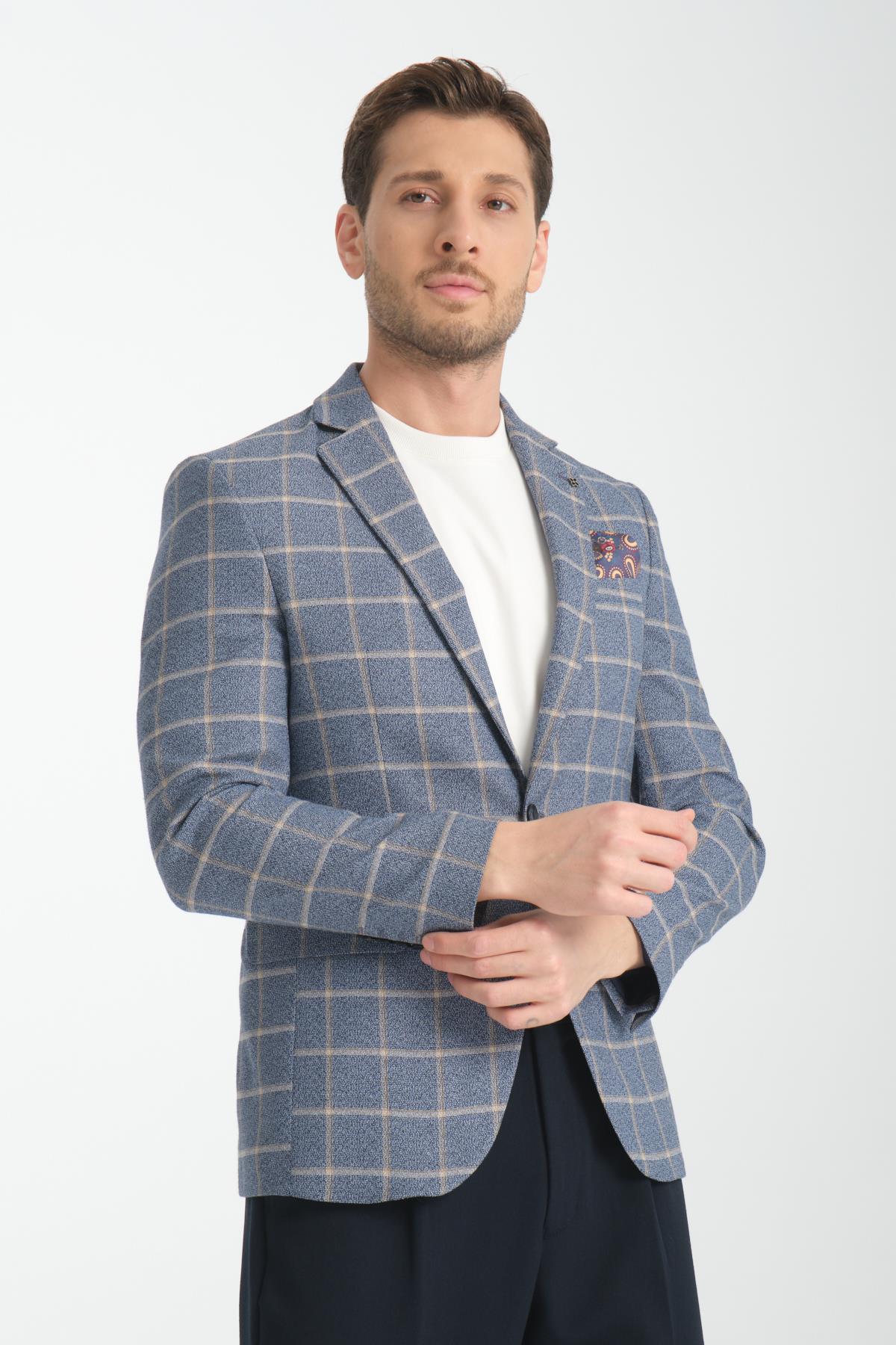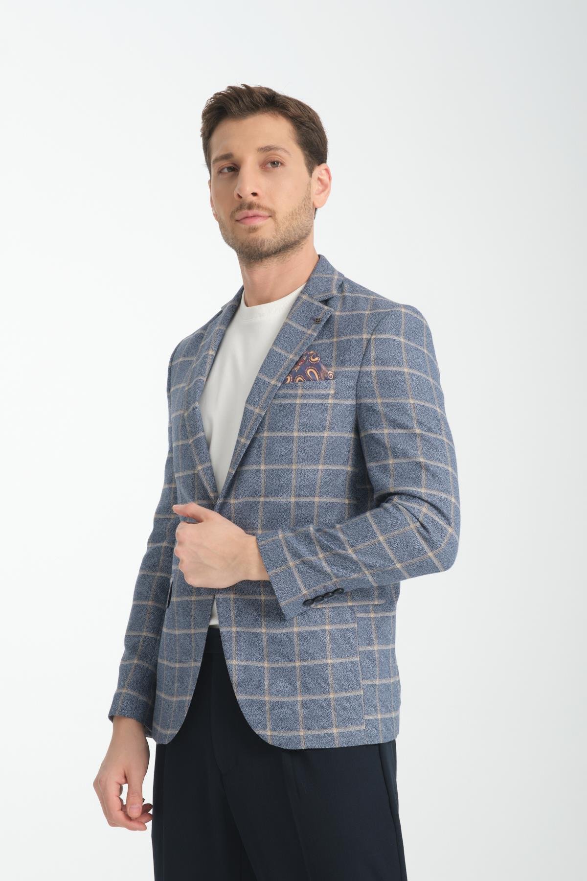 Vestore Erkek Lacivert Ekose Slim Fit Mono Yaka Spor Blazer Ceket